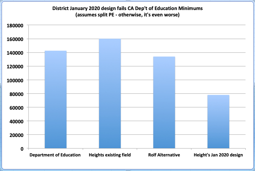 January 2020 design fails the cA department of education minimum play Field requirement – by 50%