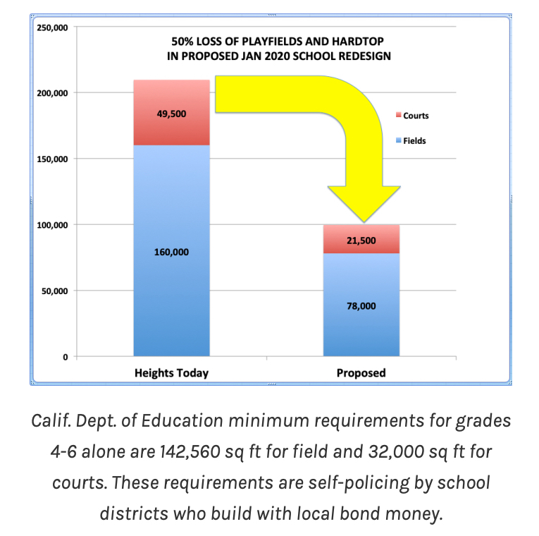 The Heights school rebuild – with no change in student population – is costing our community something beyond monetary value. Heights school children will be left with a field that the district asserts is “adequate” for P.E., and the public will go from having three and a half acres of wide open playing fields to only guaranteed access to a mere four-tenths of an acre of space with a toddler playground outside school gates.