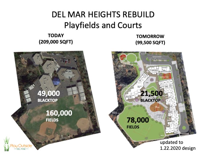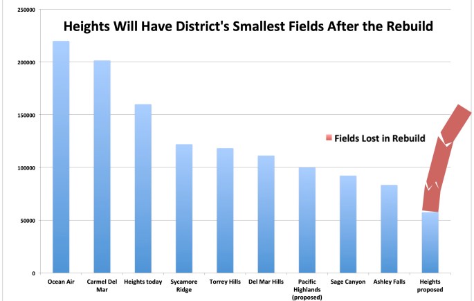 District’s Jan 2020 Design Makes Heights Fields the District’s SmallestJan 2020 district design cuts Heights’ fields to 60,000 square feet below the legal minimum required by the California Department of Education