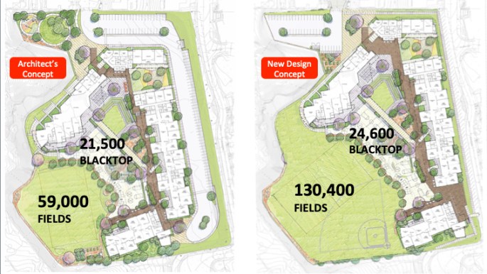 Rolf Silbert’s Design – Better Safety, More Convenient Pick-Up and Drop-Off, Traffic Improved, Fields Doubled, Environmentally Superior – With No Change In # of Parking Spots and No Change in Buildings Proposed by the District’s Site Design!!